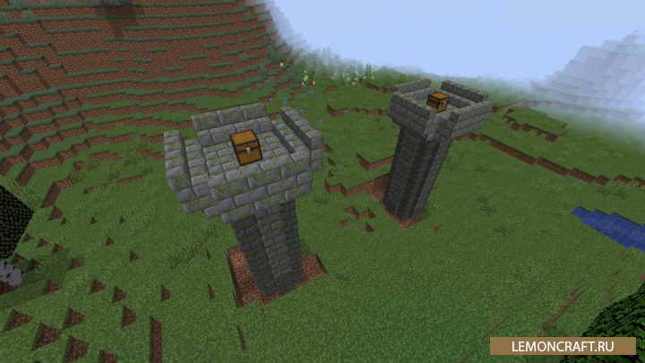 Мод на небольшие структуры Sky's Small Structures не добавит в игру каких то супер больших построек, типа замков с башнями, а сделает ваш мир немного уникальнее за счет небольших структур типа стоянки с костром. Кроме этого вы сможете встретить небольшие башенки с сундуками и андезитовых руины недалеко от деревень.